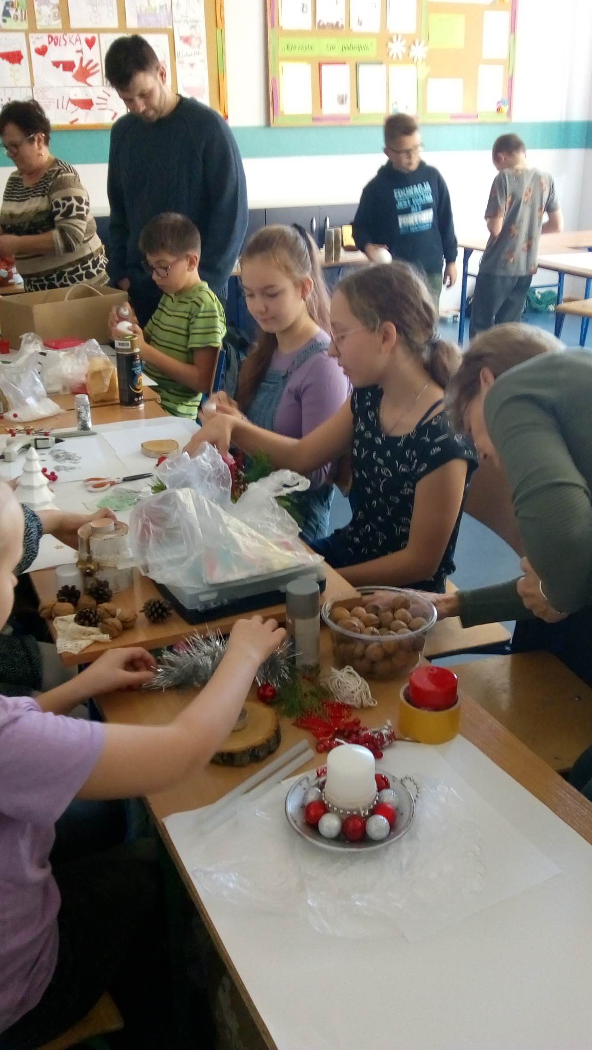 ,,Nim zabłyśnie pierwsza gwiazdka" - uczniowie klasy V wraz z rodzicami i babciami w ramach międzypokoleniowej wymiany doświadczeń tworzyli ozdoby świąteczne. W miłej i twórczej atmosferze powstały piękne i oryginalne prace.