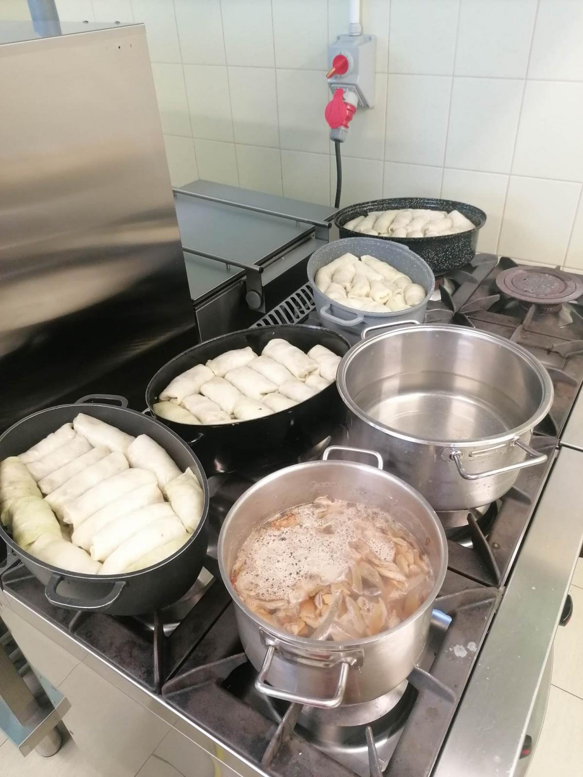 Świąteczny klimat w szkole! Święta to magiczny czas, w którym wszystko staje się możliwe. Jednak magia świąt potrzebuje dobrych ludziom, a tych w szkolnej kuchni nie brakuje. Dzisiaj Szkoła Podstawowa w Nowotańcu zmieniła się w największą kuchnię w okolicy, a to za sprawą naszych byłych i obecnych pracowników oraz Pań z Koła Gospodyń Wiejskich w Nowotańcu, które w ramach projektu „Nim zabłyśnie pierwsza gwiazdka…”, przeprowadziły warsztaty kulinarne dla młodzieży. Ich efektem jest blisko 2000 pierogów i inne świąteczne potrawy, które będzie można degustować już w niedzielę! Z całego serca dziękujemy za nieocenioną pomoc, wsparcie i urzeczywistnienie magii świąt.