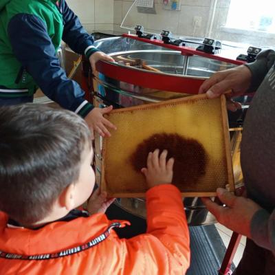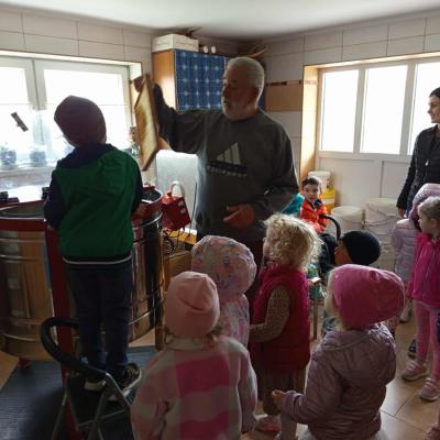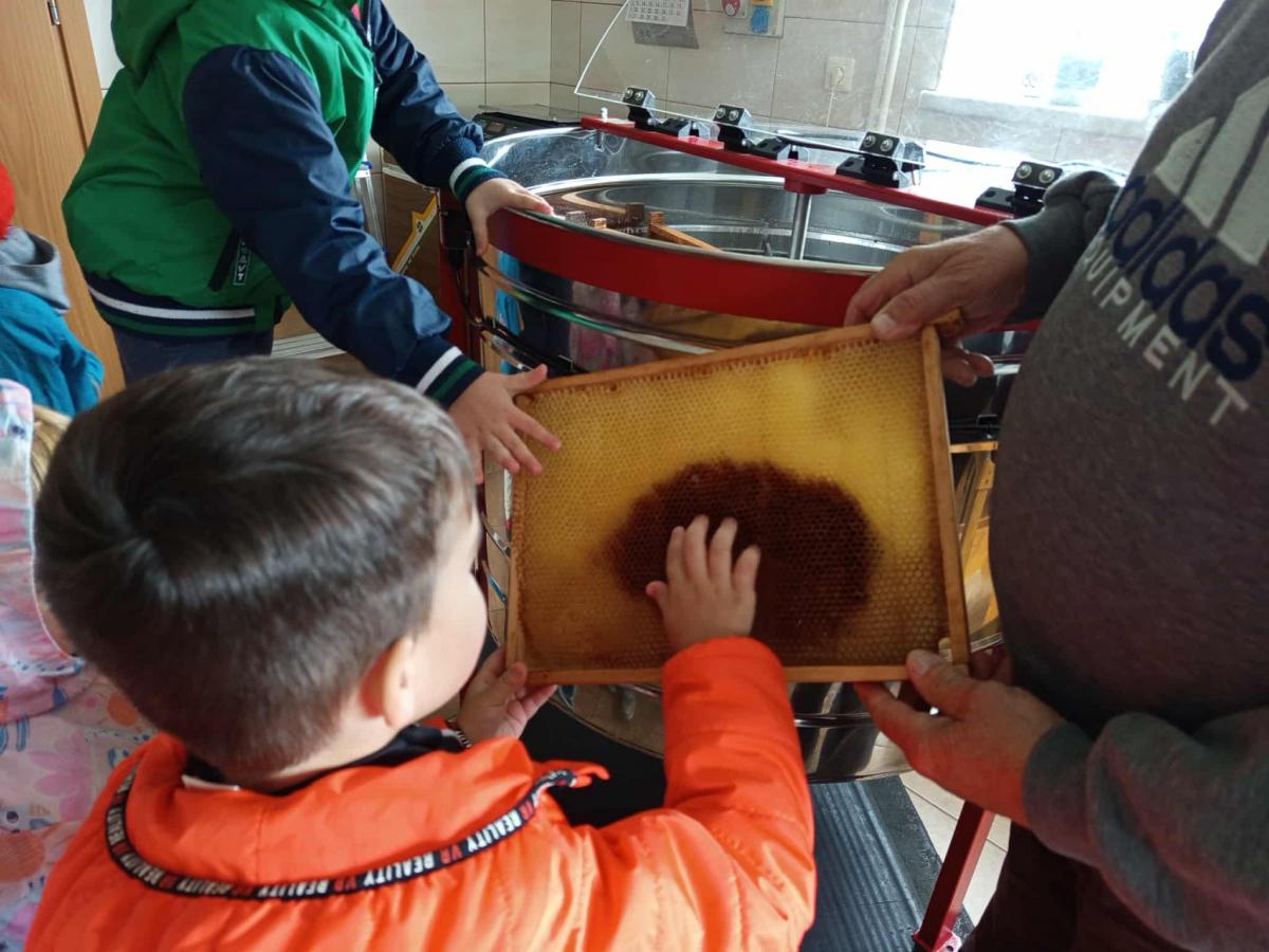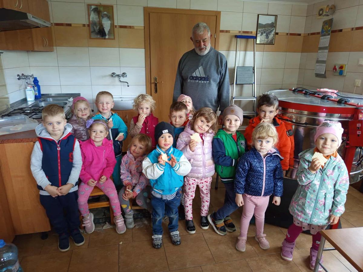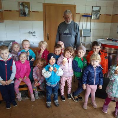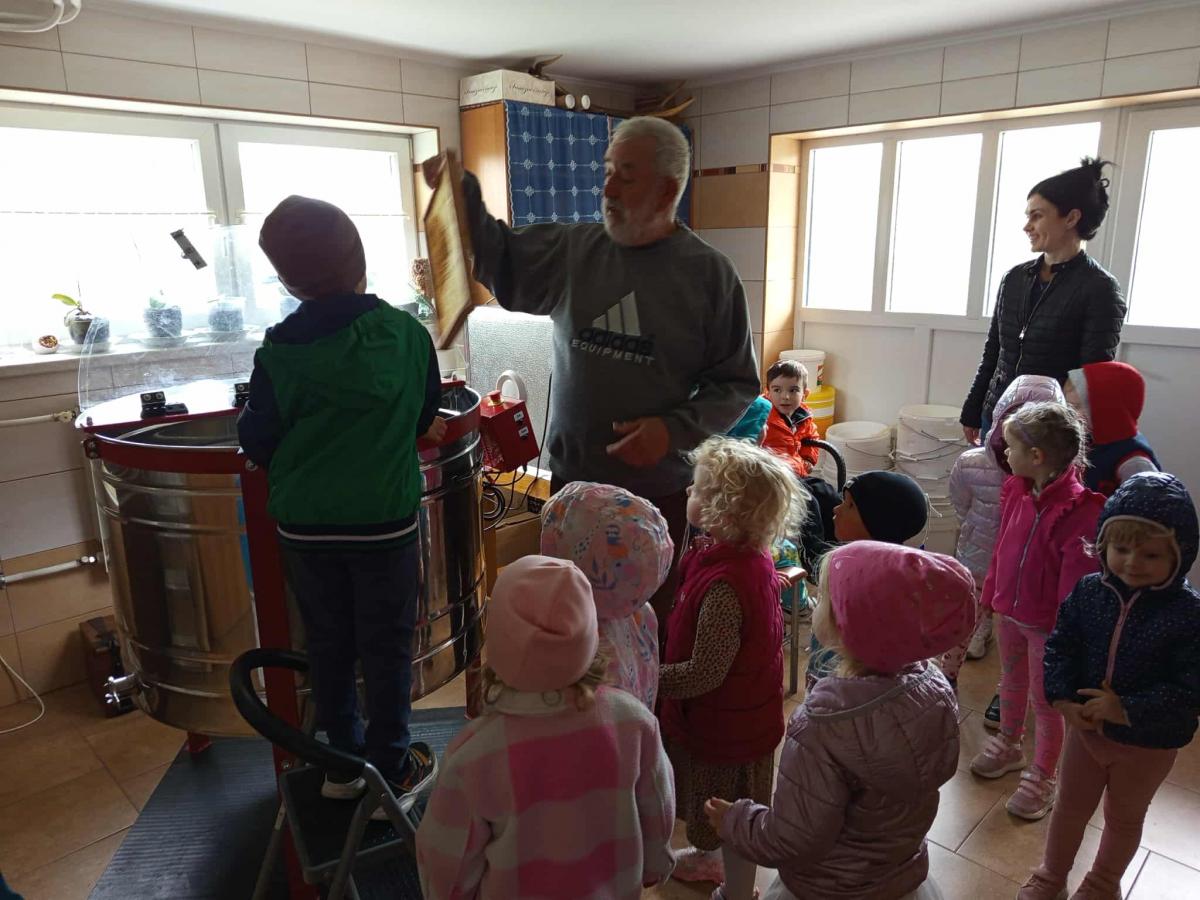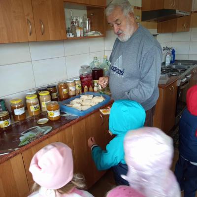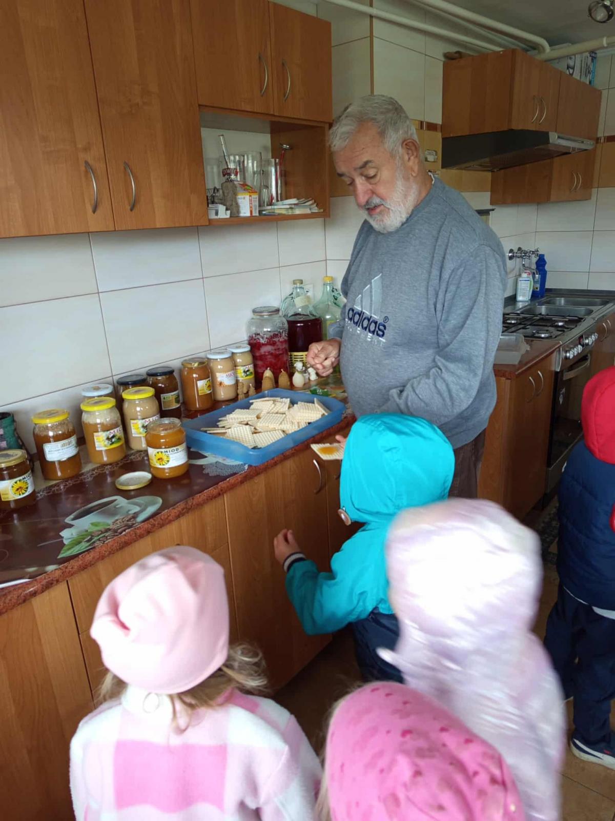 25 września 3-4-latki z grupy przedszkolnej udały się na spotkanie z panem Eugeniuszem, który jest pszczelarzem. Na miejscu dzieci obejrzały ule, w których wcześniej mieszkały pszczoły. Wysłuchały opowieści pszczelarza o swojej pracy i obejrzały urządzenia do produkcji miodu, a wśród nich miodarkę. Przedszkolakom bardzo spodobały się świeczki z wosku pszczelego wykonane przez pana Eugeniusza oraz różne rodzaje miodów. Na koniec spotkania dzieci miały możliwość spróbowania naturalnego miodu.