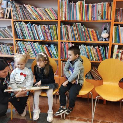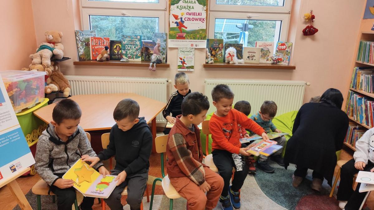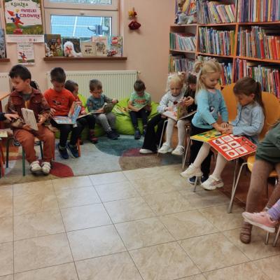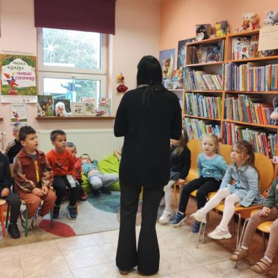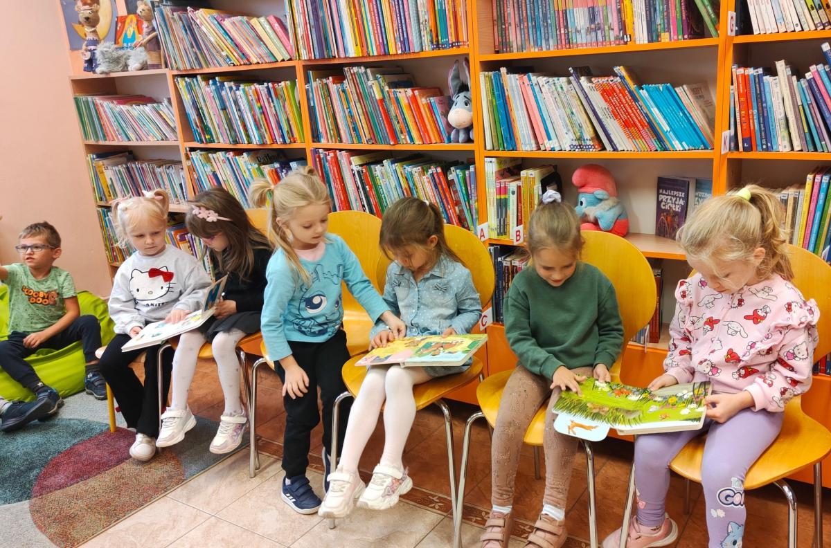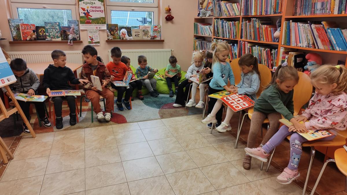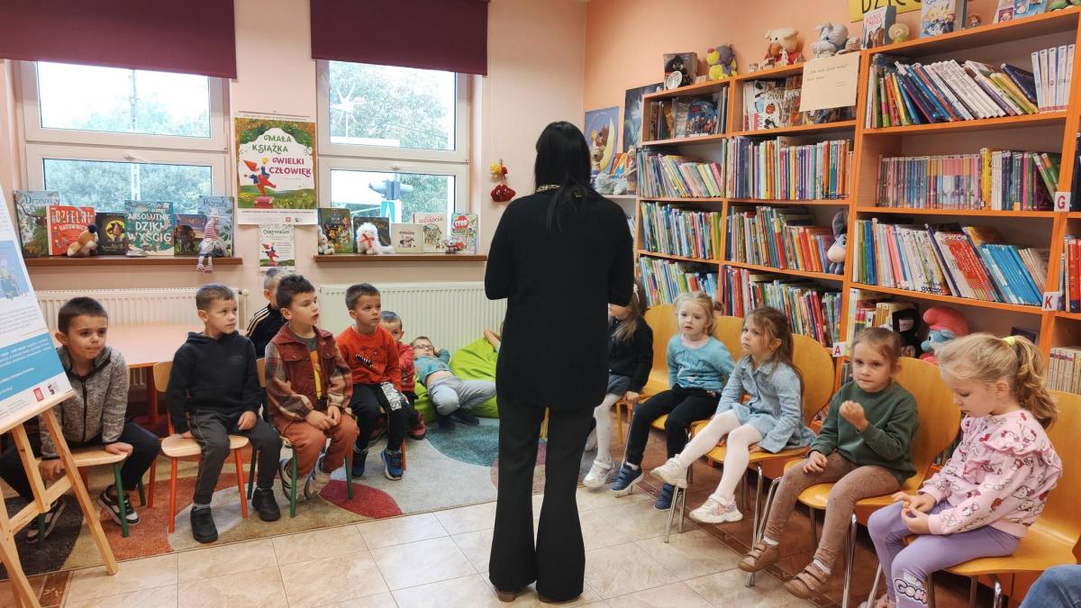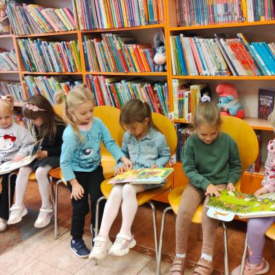 Podczas wizyty pani Angelika przeczytała dzieciom kilka krótkich bajeczek, które wzbudziły ich ogromne zaciekawienie i uśmiechy na twarzach. Spotkanie w bibliotece okazało się niezwykle udane – przedszkolaki były zachwycone i obiecały, że będą często wracać do tego wyjątkowego, pełnego czarów miejsca!