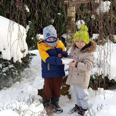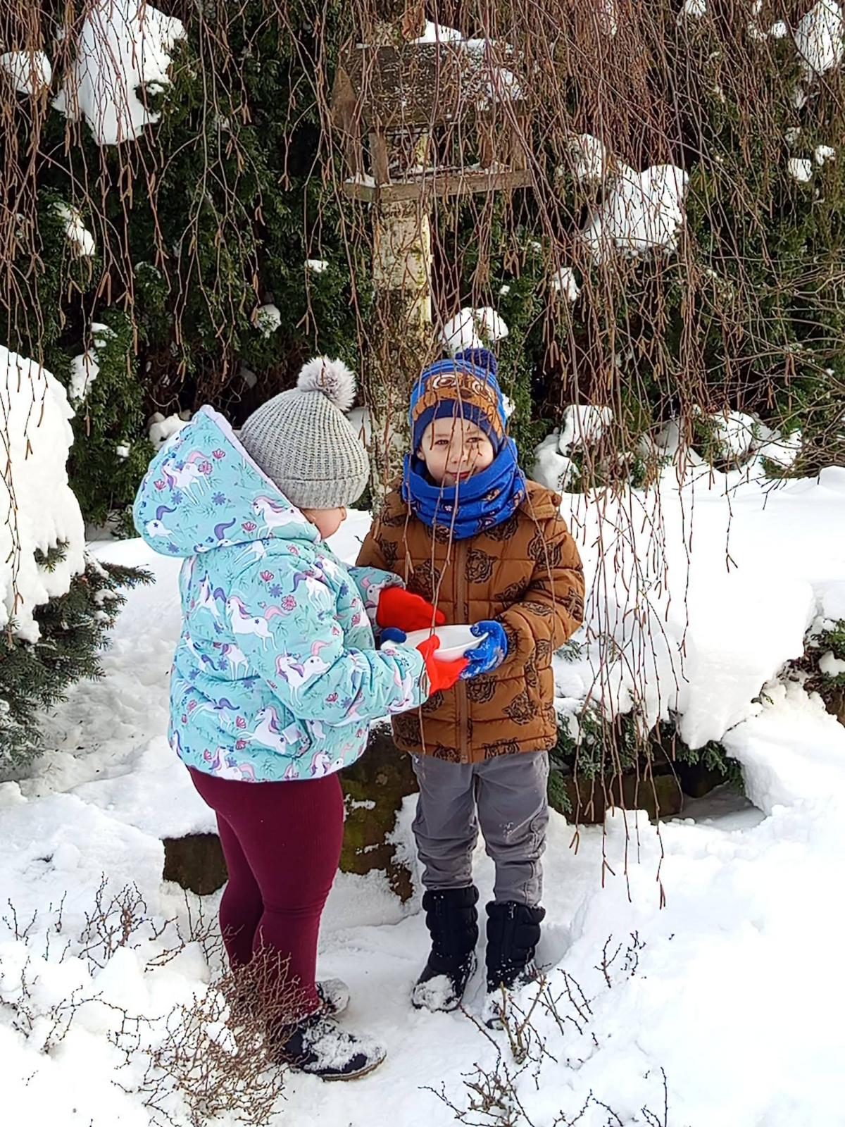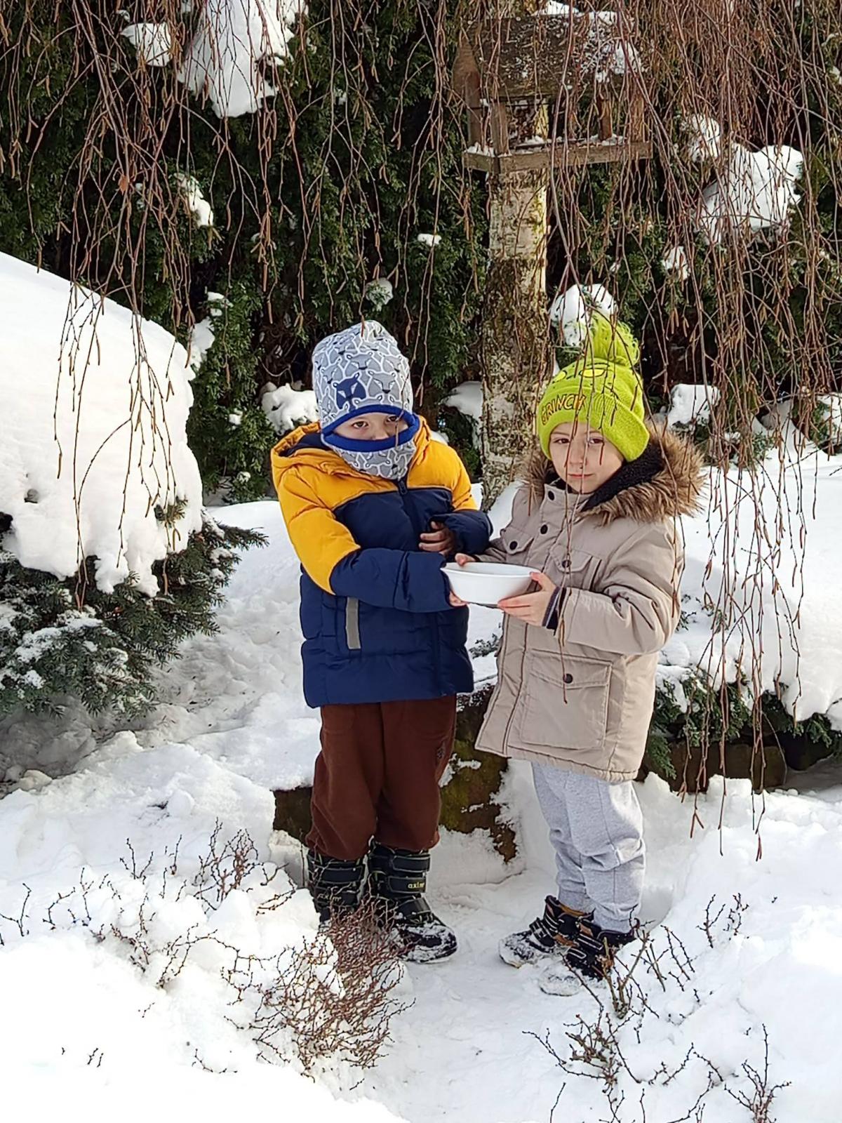 Dzisiaj najmłodsza grupa przedszkolna odbyła praktyczną lekcję przyrody pt. „Dokarmianie ptaków zimą”. Dzięki niej dzieci nauczyły się, jak dbać o ptaki w okresie zimowym, poznały znaczenie odpowiedzialności oraz zyskały poczucie, że robią coś dobrego.