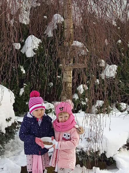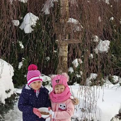 Do przyszkolnego karmnika przyniosły ziarna słonecznika oraz kule tłuszczowe dla ptaków.