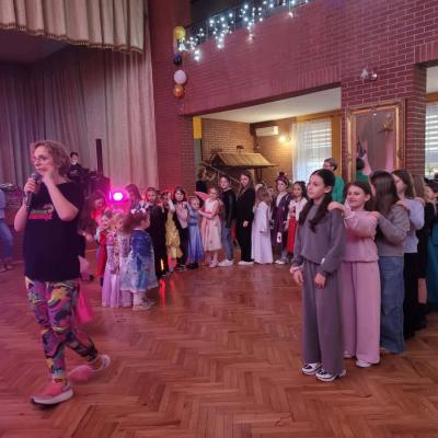 O to, by uśmiech nie znikał z twarzy dzieci, zadbali niezastąpieni animatorzy z grupy Zakręcone Animacje. Z niezwykłym wyczuciem, a jednocześnie ogromnym entuzjazmem, wciągali najmłodszych do świata konkursów, wspólnych tańców i kreatywnych zabaw. Każdy utwór porywał do ruchu, a każda minuta była wypełniona czystą, dziecięcą radością. W przerwach między szaleństwami na parkiecie na dzieci czekały niespodzianki, chrupiący popcorn i słodkie przekąski, które dodawały sił do dalszej zabawy.