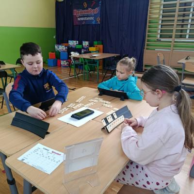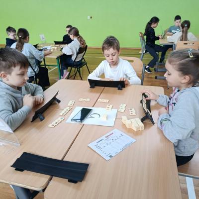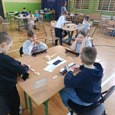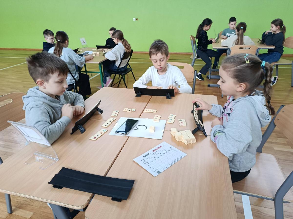 Dziś uczniowie klas 1-3 i 4-8 zmagali się w zawodach Rummikub.