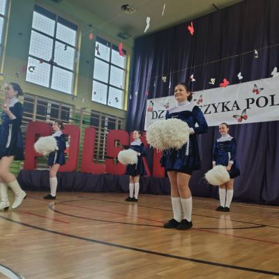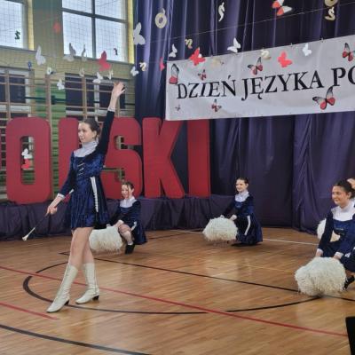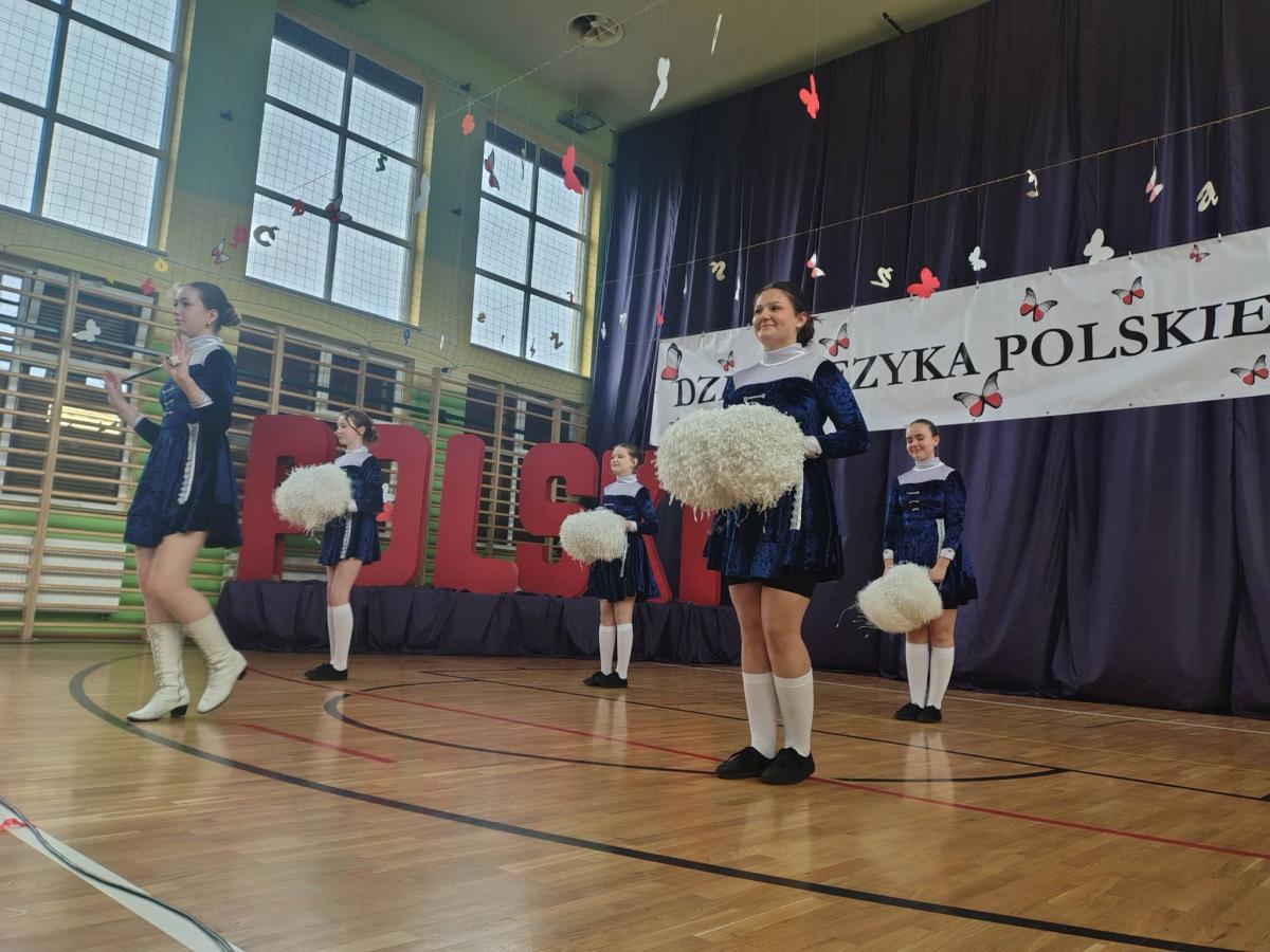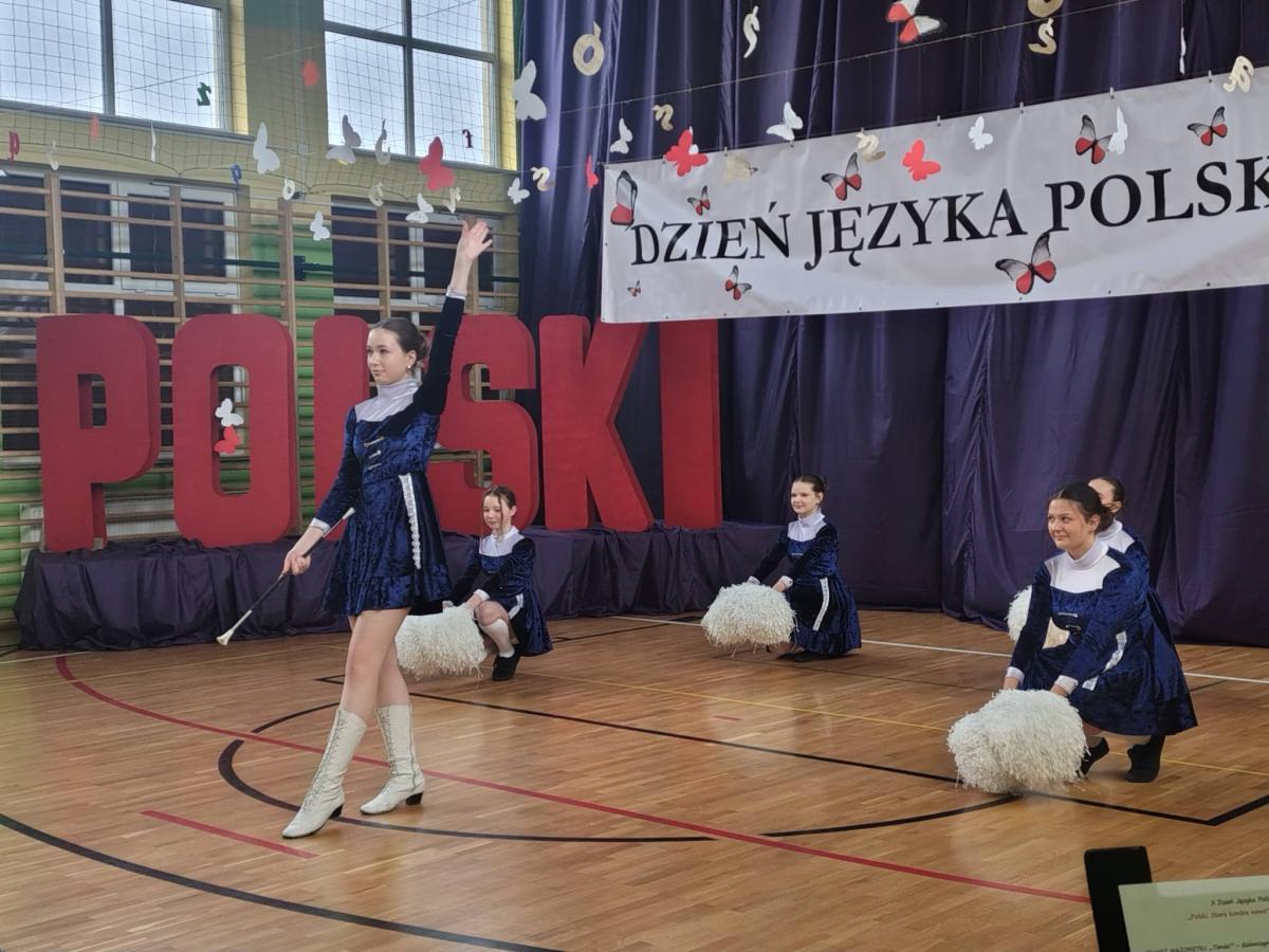 Uroczystość rozpoczęła się tanecznym występem mażoretek z klasy VII, które wprowadziły publiczność w radosny nastrój. Następnie Pani Dyrektor powitała zgromadzonych gości, podkreślając w swoim przemówieniu, że troska o język ojczysty to jeden z najważniejszych przejawów dojrzałości społecznej oraz patriotyzmu.