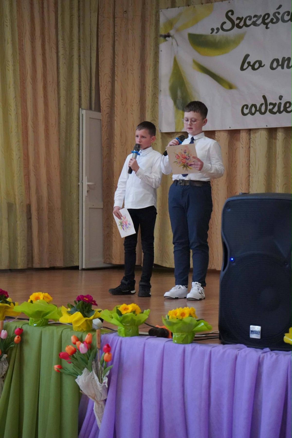 Na scenie pojawiły się radosne układy taneczne, które wprowadziły widzów w pogodny nastrój, a następnie piosenki w wykonaniu uczniów. Ważną częścią programu były również piękne sentencje i cytaty poświęcone kobietom, przypominające o ich sile, wrażliwości oraz niezwykłej roli w codziennym życiu.
