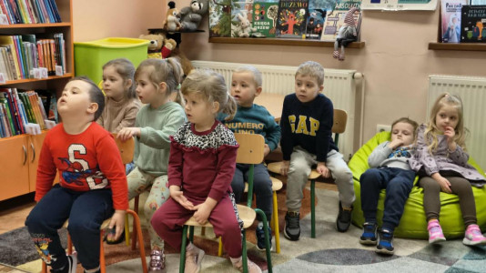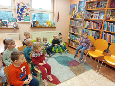 W dniu 27 marca 2026 roku dzieci z grupy trzylatków i czterolatków wybrały się z wizytą do Biblioteki Publicznej w Nowotańcu. Na miejscu czekała na nich pani Angelika, która serdecznie przywitała przedszkolaków.
