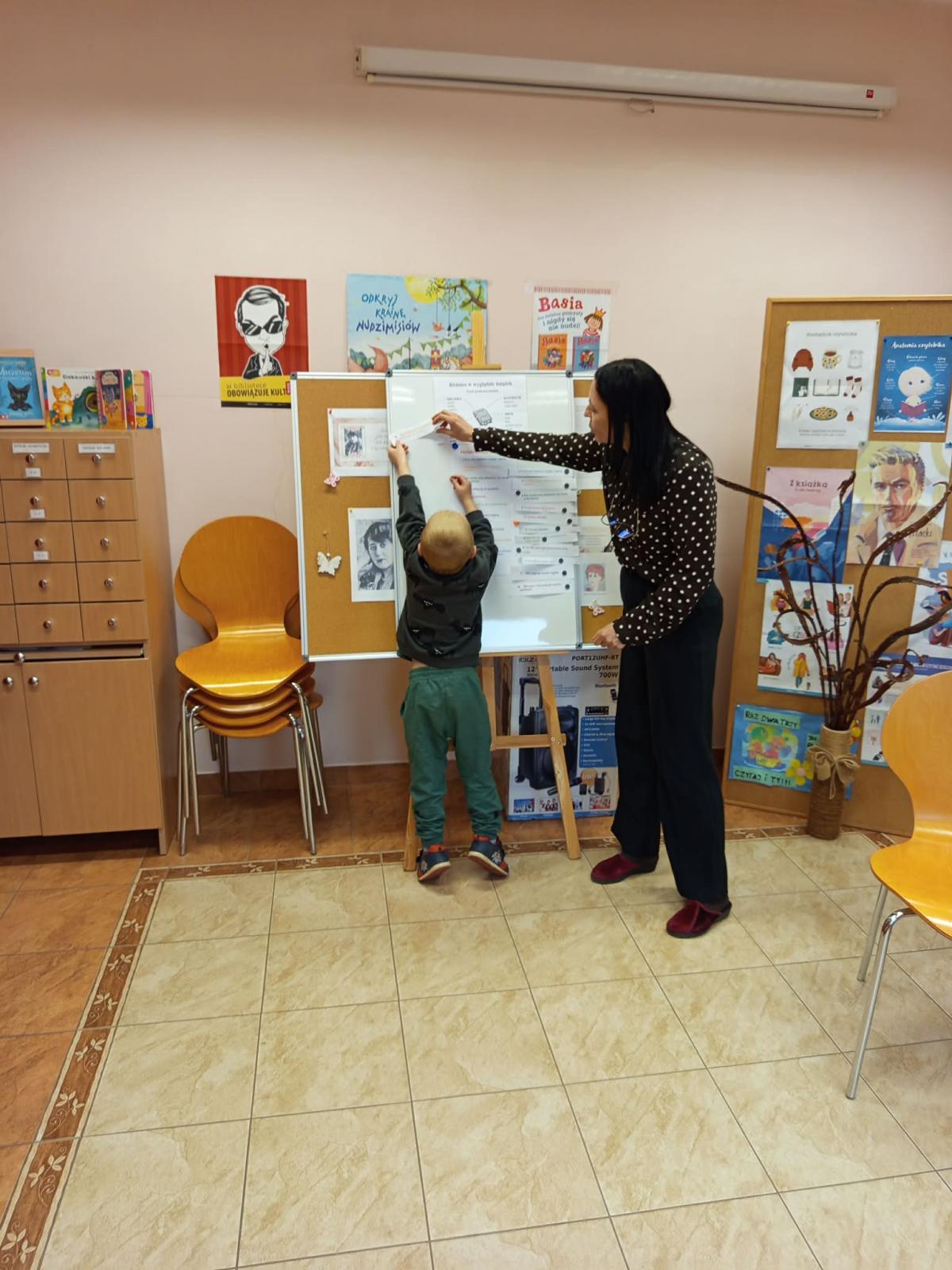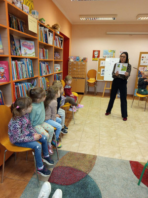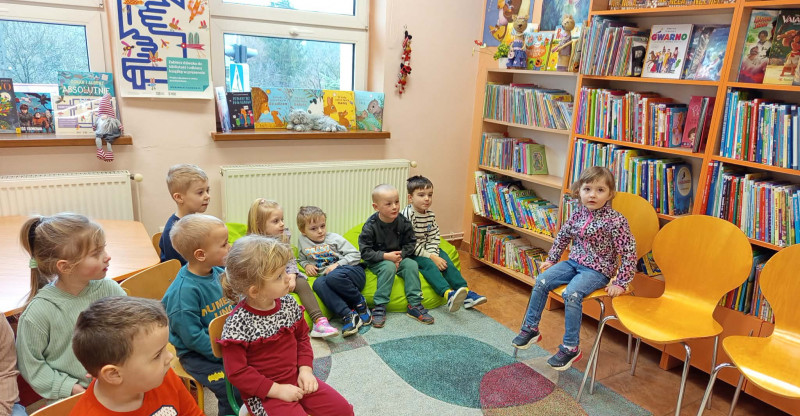 Po obejrzeniu wnętrza biblioteki dzieci dowiedziały się, jakie możliwości oferuje to miejsce i co można w nim robić. Następnie zapoznały się z prośbami książki skierowanymi do czytelników.