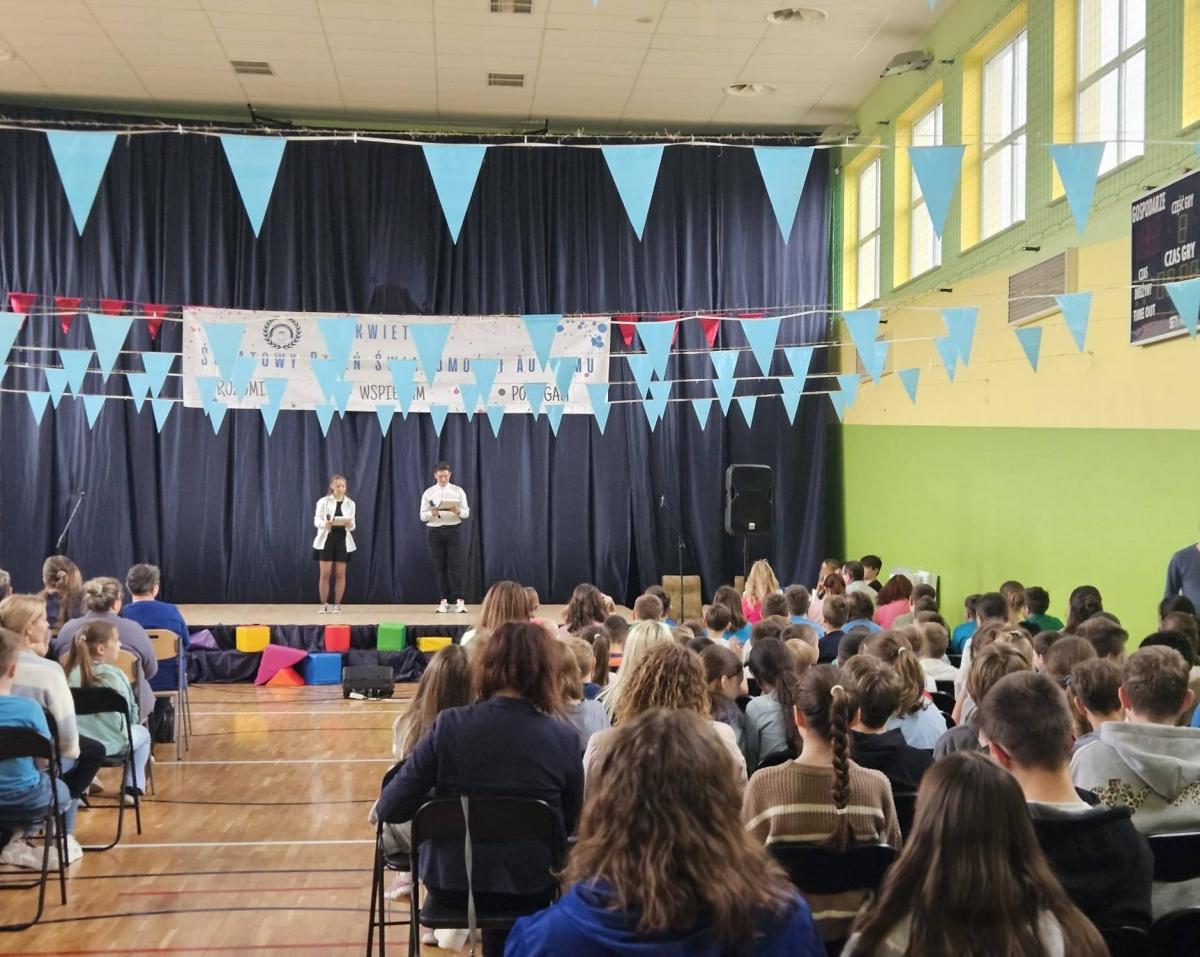 Nie sposób było przedstawić w jednym przekazie całej relacji z kolejnych obchodów Światowych Dni Świadomości Autyzmu, które odbyły się w Zespole Szkół w Nowotańcu. Jak wspomnieliśmy w części pierwszej tegoroczne wydarzenie zostało skierowane do opiekunów dzieci z autyzmem i neuroróżnorodnościami, była to uroczystość poświęcona Mamom, Ojcom, Dziadkom i wszystkim tym, którzy są wsparciem każdego dnia dla osób potrzebujących pomocy a dla nas są cichymi Bohaterami drugiego planu. Przez treści piosenek, wiersza, przedstawienia i wywiadu oraz przez taniec chcieliśmy pokazać, jak ważną rolę pełnią w/w osoby w życiu dzieci i młodzieży w spektrum autyzmu i z neuroróżnorodnościami. Chcieliśmy, aby poczuli, że jesteśmy z nimi, że widzimy i doceniamy Ich trud i ciężką codzienną pracę oraz że są dla nas ważni, żeby też zobaczyli nasze wsparcie, pomoc i akceptację! My jako społeczność szkolna od dawna nie jesteśmy zieloni w temacie autyzmu i neuroróżnorodności.