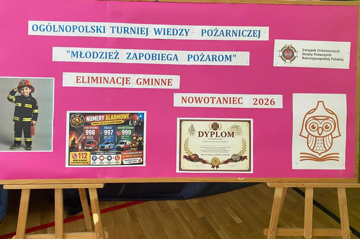 W tym roku etap gminny Ogólnopolskiego Turnieju Wiedzy Pożarniczej „Młodzież Zapobiega Pożarom” odbył się w Zespole Szkół w Nowotańcu. Konkurs miał na celu popularyzację wiedzy z zakresu ochrony przeciwpożarowej, udzielania pierwszej pomocy oraz działalności straży pożarnej.