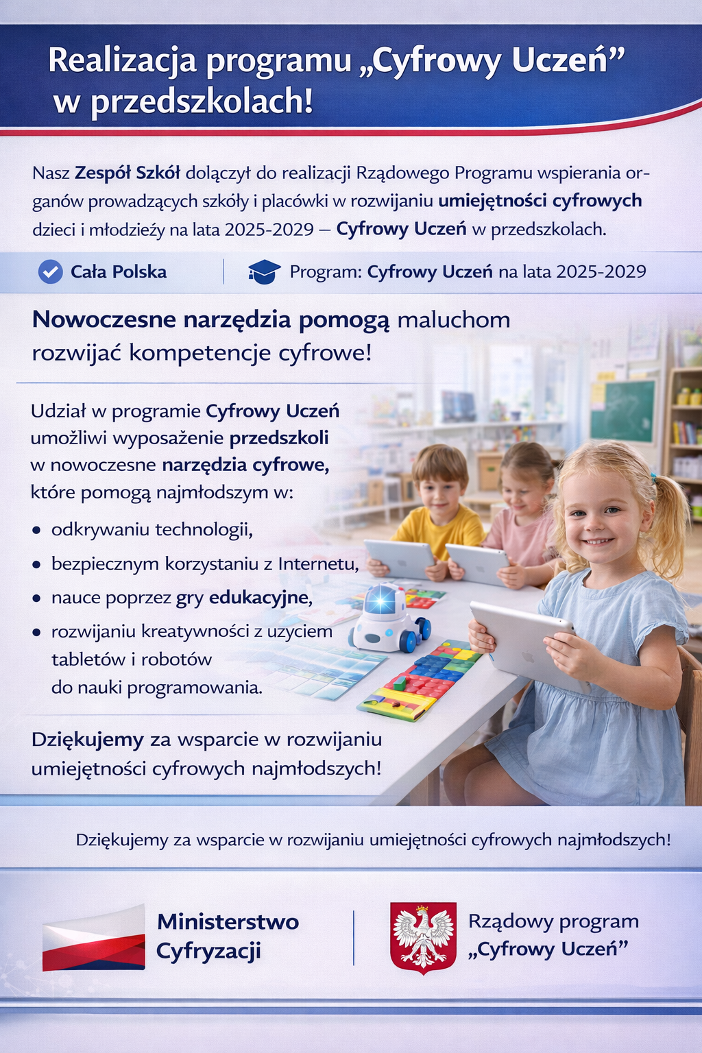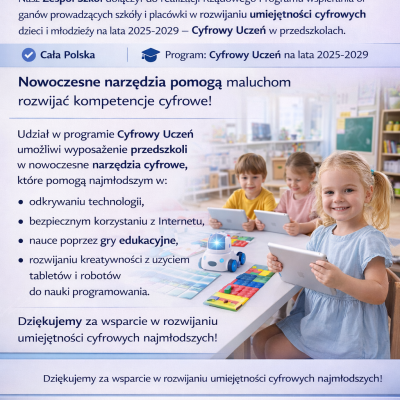 Realizacja Rządowego Programu „Cyfrowy Uczeń” w przedszkolach